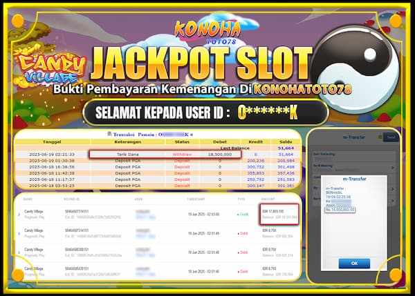Jakarta, 21 Juni 2025 — Gak semua orang percaya sama yang namanya menang beneran di situs slot. Apa lagi kalo cuma denger katanya doang, pasti masih banyak yang nganggep itu cuma akal-akalan. Tapi tenang, di sini gue kasih lo bukti konkret—real transfer, real cuan, dari game Candy Village di link Konohatoto78. Hari ini adalah hari keberuntungan bagi mereka yang mendapatkan Jackpot Konohatoto78 Hari Ini.