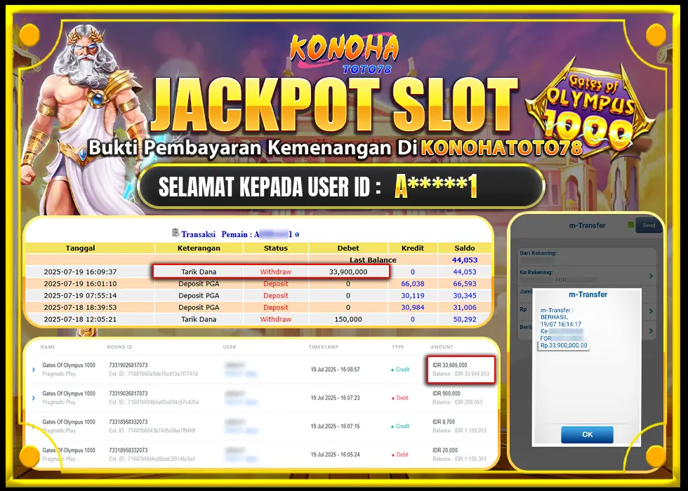 Jakarta, 20 Juli 2025 — Masuk saldo Rp33,9 juta ke akun? Gak semua orang bisa cerita kayak gini. Berkat Jackpot Olympus 1000, ada yang beneran ngerasain sendiri di Konohatoto78. Tanpa basa-basi, dan gak perlu langkah ribet yang bikin pusing tujuh keliling, duit langsung nongol. Cerita ini bukan buat gaya, tapi bukti nyata kalau platform yang satu ini emang tahu cara bikin membernya puas—baik dari sistem, pencairan, sampai servis nya.