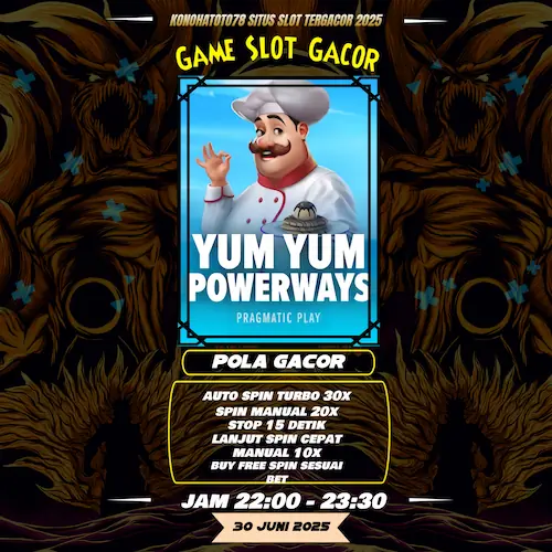 Jakarta, 30 Juni 2025 — Hey, sobat slotters! Di dunia slot online, semua orang pasti pengen ngerasain yang namanya Jackpot alias JP. Tapi sayangnya, enggak semua tau cara main yang bener-bener efektif buat ngedapetin itu. Banyak yang cuma asal putar, berharap hoki dateng sendiri. Nah, kalau lo lagi nyari cara dapetin Jackpot Yum Yum Powerways, mending lo simak baik-baik bahasan ini. Bukan cuma sekedar omongan doang, kita bakal bedah langsung pola gacor yang udah terbukti cuan banget di Konohatoto78. Gak usah banyak basa-basi, langsung aja kita kupas cara main yang masuk akal dan bisa lo terapin sekarang juga.