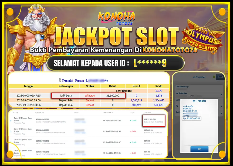 Dunia slot online kerap menghadirkan cerita menarik tentang kemenangan besar yang mampu mengubah nasib pemain hanya dalam hitungan menit. Salah satu yang kini jadi sorotan adalah Gates of Olympus Super Scatter, permainan slot besutan Pragmatic Play yang terkenal dengan fitur “tumble” dan simbol pengali kilat Zeus. Baru-baru ini, seorang pemain berhasil meraih kemenangan fantastis senilai Rp36,5 juta hanya dengan memanfaatkan kombinasi pola super scatter .