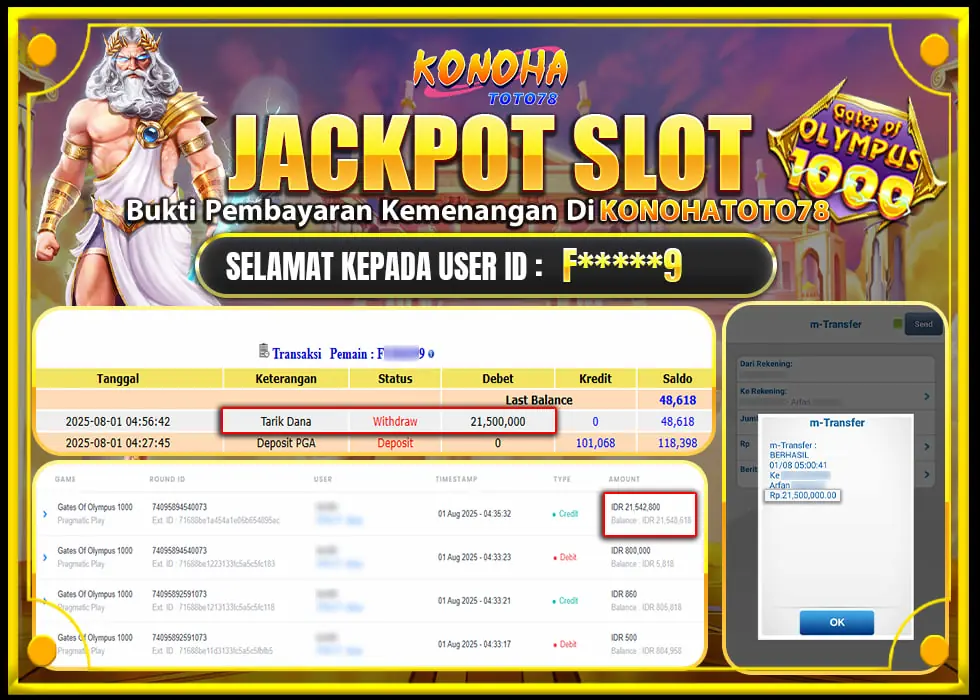 Jakarta, 2 August 2025 — Lo pasti sering denger tentang situs togel atau slot online yang katanya bisa bikin cuan gede, tapi pas menang malah ribet bayarnya? Nah, beda cerita kalau lo main di Konohatoto78 terbukti bayar. Baru-baru ini, salah satu member berhasil WD jackpot sebesar Rp21.500.000, dan yang bikin salut—duitnya langsung masuk tanpa ribet!