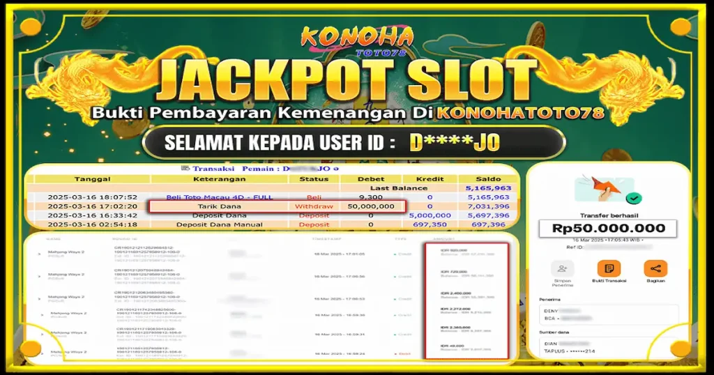 Lo pernah gak ngebayangin cuma modal deposit 2x? Terus, dalam waktu kurang dari sejam, lo bisa WD sampe 50 juta rupiah? Kedengeran kayak mimpi, ya? Tapi ini bukan dongeng, bro! Cerita gokil ini kejadian langsung di KONOHATOTO78, tempat di mana banyak player udah ngerasain sensasi cuan instan lewat game seru seperti Mahjong Ways 2. Game seru ini adalah Main Mahjong Ways 2, yang jadi andalan banyak orang.