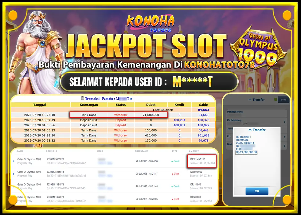 Jakarta, 21 Juli 2025 — Siapa pun yang nyalinya tipis, mending mundur perlahan. Karena yang satu ini bukan buat iseng-iseng ngetes hoki. Ini tentang pola 1000 Gates of Olympus yang beneran bikin keringetan, tapi juga bisa ngebawa cuan gedean gaji manager kantor sebelah. Gak main-main, ada yang dapet Rp21,6 juta cuma dari sekali ngegas, dan semua itu kejadian nyata di Konohatoto78. Inilah momen untuk Pola Akurat Olympus 1000 menjadi kunci kemenangan.