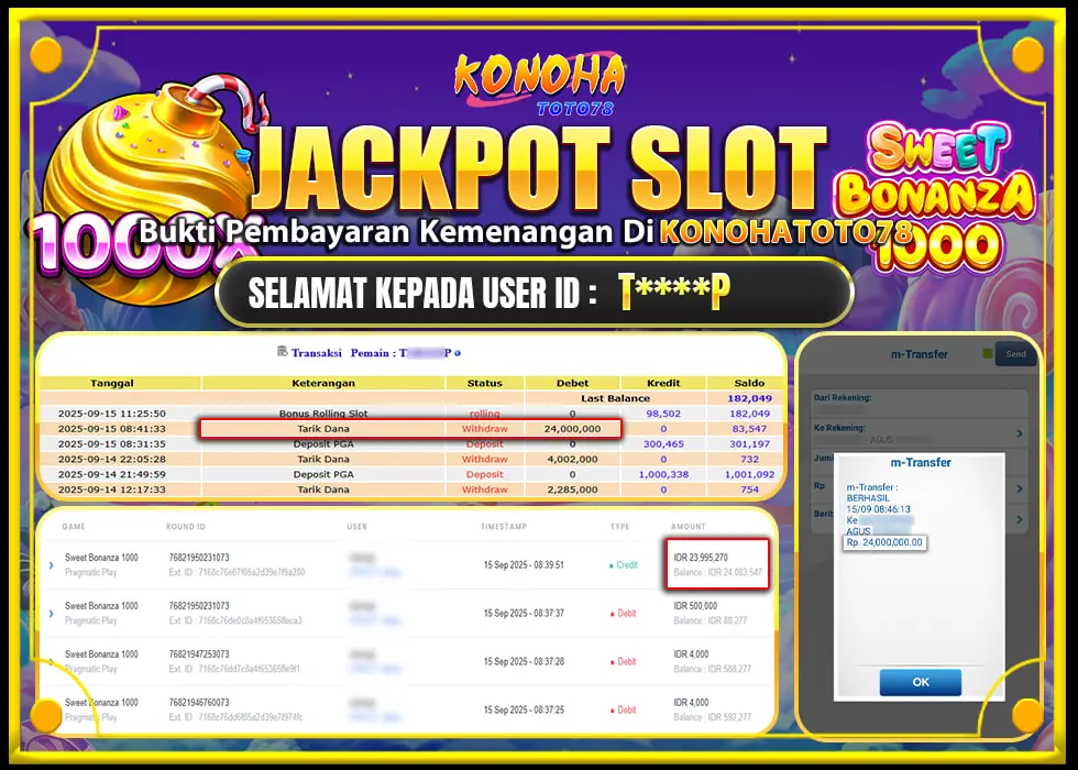 Kemenangan fantastis dari Rp300 ribu menjadi Rp24 juta di Bonanza 1000 membuktikan bahwa strategi dan pola yang tepat bisa membawa hasil luar biasa. Memahami pola gacor dan menerapkan manajemen modal yang disiplin adalah kunci utama dalam permainan slot online. Jika kamu ingin mencoba peruntungan, pastikan bermain di platform terpercaya yang mendukung berbagai metode transaksi, termasuk slot Dana, agar proses deposit dan penarikan lebih praktis.