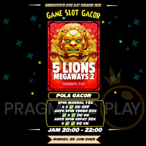Jakarta, 25 Juni 2025 — Hey, sobat slotters! kalau udah sering main slot online, pasti gak asing lagi sama yang namanya 5 Lions Megaways 2. Tapi, bukan soal game-nya yang mau dibahas sekarang. Yang lebih penting dan paling banyak dicari itu: pola gacor 5 Lions Megaways 2, cara main yang bener, dan gimana caranya ngambil bonus maksimal di tempat yang terpercaya kayak link Konohatoto78.