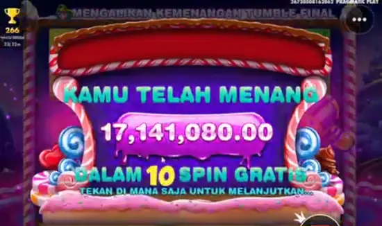 - 21:00 – 23:15 → Ini yang paling hot. Frekuensi keluar simbol bom dan buah tinggi banget, plus banyak yang dapet free spin back-to-back di sini.