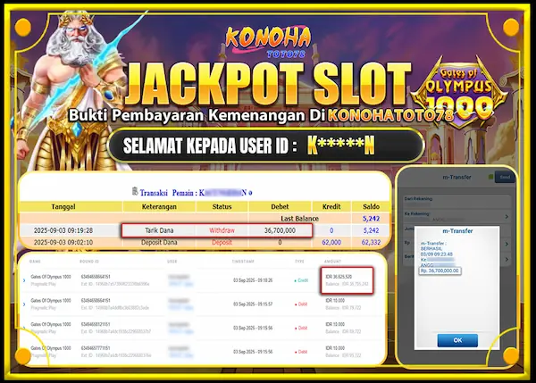Dalam dunia permainan slot online, nama Kakek Zeus 1000 sering jadi perbincangan karena mampu memberi kejutan lewat strategi tertentu. Tak sedikit pemain yang mencoba berbagai pola dan trik, namun hanya sebagian yang benar-benar berhasil. Baru-baru ini, seorang pemain berhasil membuktikan bahwa dengan modal kecil sekitar Rp62 ribu, ia mampu meraih hasil fantastis hingga Rp36,7 juta.
