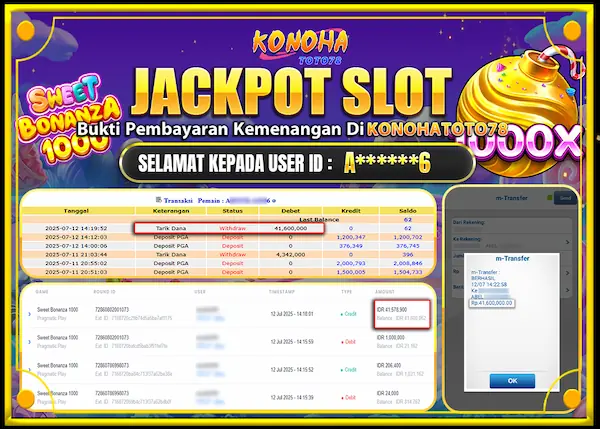 Jakarta, 13 Juli 2025 — Banyak yang mikir cuan gede dari slot cuma mitos doang. Tapi kenyataan di lapangan ngomong lain. Di Konohatoto78, ada bukti nyata withdraw Rp41,6 juta yang kejadian gara-gara pola gacor Sweet Bonanza 1000, yang membuat banyak orang tertarik pada Sweet Bonanza 1000 online. Nggak sekedar hoki lewat, ini beneran hasil dari setup yang rapi dan pola yang udah diuji. Bukan ngasal spin, tapi ada ritme yang dibaca, dijalanin, dan akhirnya bawa pulang cuan manis.