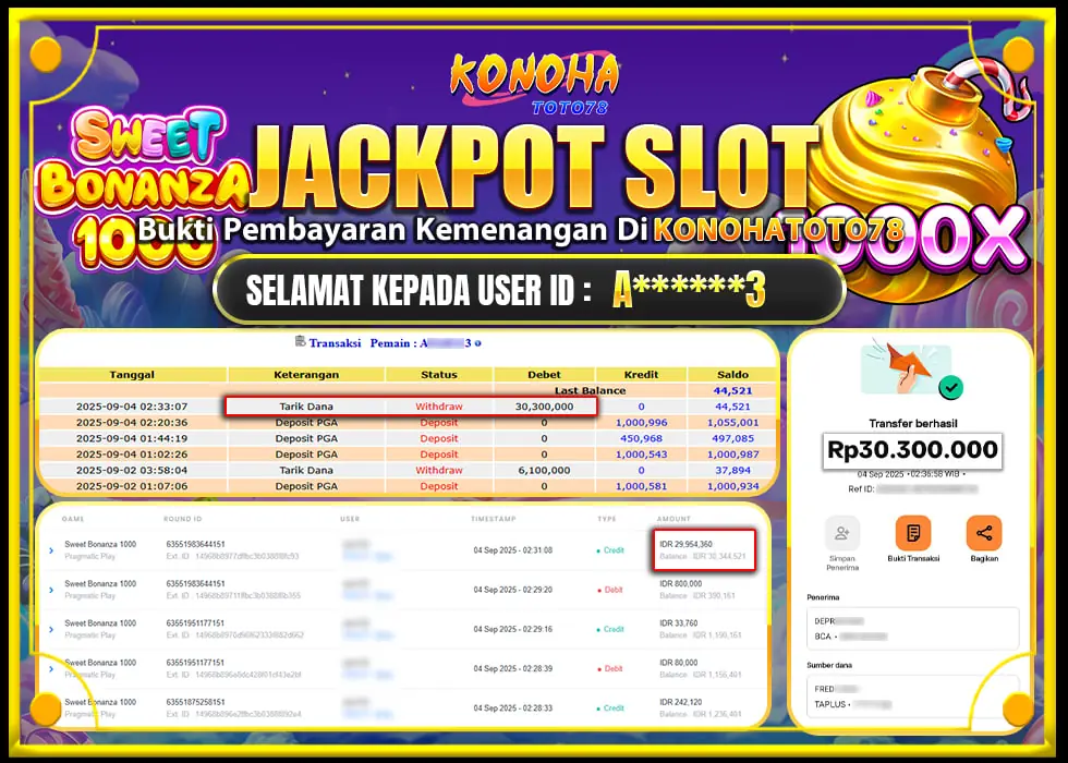 Sweet Bonanza memang bukan sekadar permainan hiburan, tetapi juga ladang cuan jika dimainkan dengan strategi tepat. Resep yang belakangan ini ramai diperbincangkan terbukti membantu pemain mencapai WD besar hingga Rp30,3 juta. Dengan menguasai trik main Sweet Bonanza 1000 di Konohatoto78, pemain bisa memperbesar peluang profit sekaligus mengurangi risiko kekalahan besar.