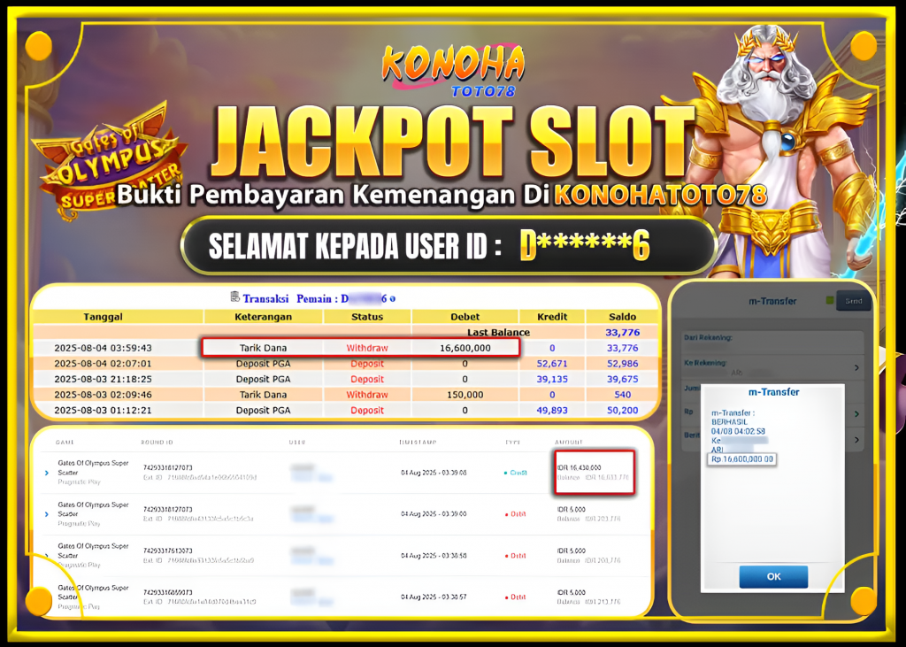 Jakarta, 4 August 2025 — Lo pasti udah nggak asing lagi sama game slot Zeus Super Scatter, kan? Nah, belakangan ini lagi rame banget dibahas soal pola zeus super scatter dan bukti jackpot Zeus Super Scatter dari situs Konohatoto78 yang katanya bisa bikin cuan maksimal cuma dari modal irit. Banyak juga yang mencari trik Zeus Super Scatter untuk memaksimalkan peluang menang. Tapi pertanyaannya, beneran gacor atau cuma hoax buat narik orang main?